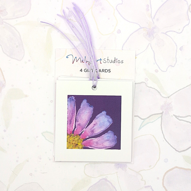A pack of 4 gift tags with mauve ties